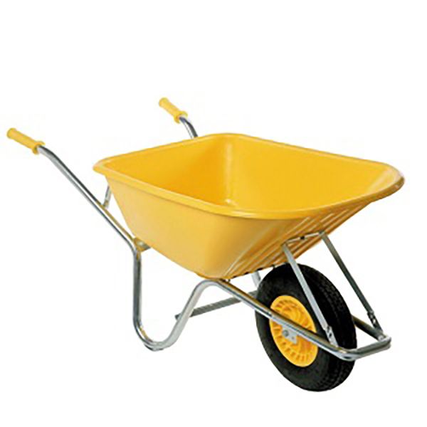 Carretilla de 150 L con sistema basculante para descarga rápida.